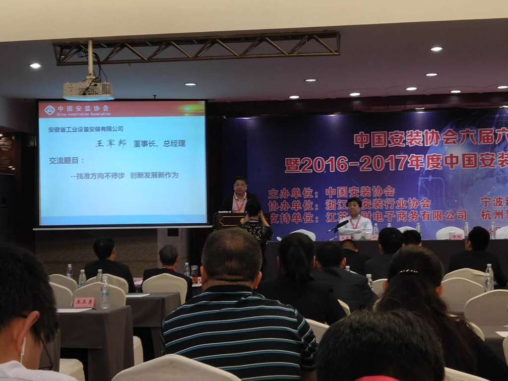 2018年4月24日,安徽省安裝和機(jī)械設(shè)備協(xié)會(huì)參加中國(guó)安裝協(xié)會(huì)在寧波召開的六屆六次理事(擴(kuò)大)會(huì)議暨2016-2017年度中國(guó)安裝協(xié)會(huì)科學(xué)技術(shù)進(jìn)步獎(jiǎng)?lì)C獎(jiǎng)大會(huì)。各省、自治區(qū)、直轄市安裝協(xié)會(huì)(分會(huì))、會(huì)員單位地區(qū)聯(lián)絡(luò)組負(fù)責(zé)人,協(xié)會(huì)理事與科技進(jìn)步獎(jiǎng)獲獎(jiǎng)單位代表等近300人參加會(huì)議。我會(huì)會(huì)長(zhǎng)王軍邦攜副會(huì)長(zhǎng)李鵬飛、秘書長(zhǎng)杜慶梅及部分會(huì)員單位代表分別參會(huì)。