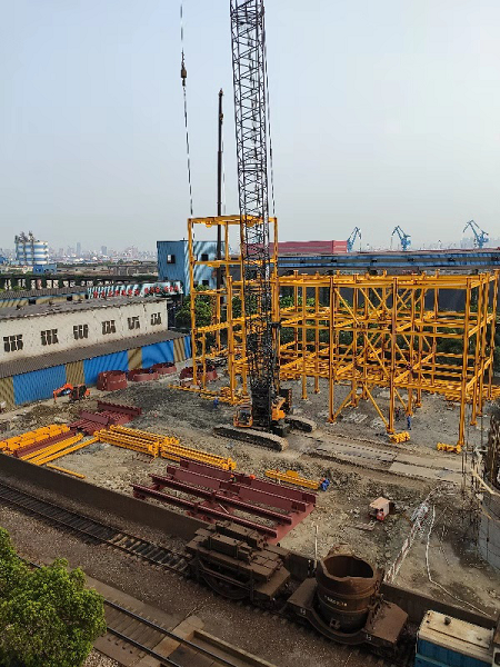 合肥分公司承接的江蘇長強(qiáng)鋼鐵有限公司180m2燒結(jié)機(jī)煙氣脫硫脫硝除塵超低排放工程,工程地點(diǎn)位于江蘇省江陰靖江工業(yè)園區(qū),工程內(nèi)容包括53米高度的吸收塔安裝、鋼構(gòu)平臺搭建及設(shè)備吊裝安裝等,是一項較為典型的工業(yè)設(shè)備機(jī)電安裝工程項目。