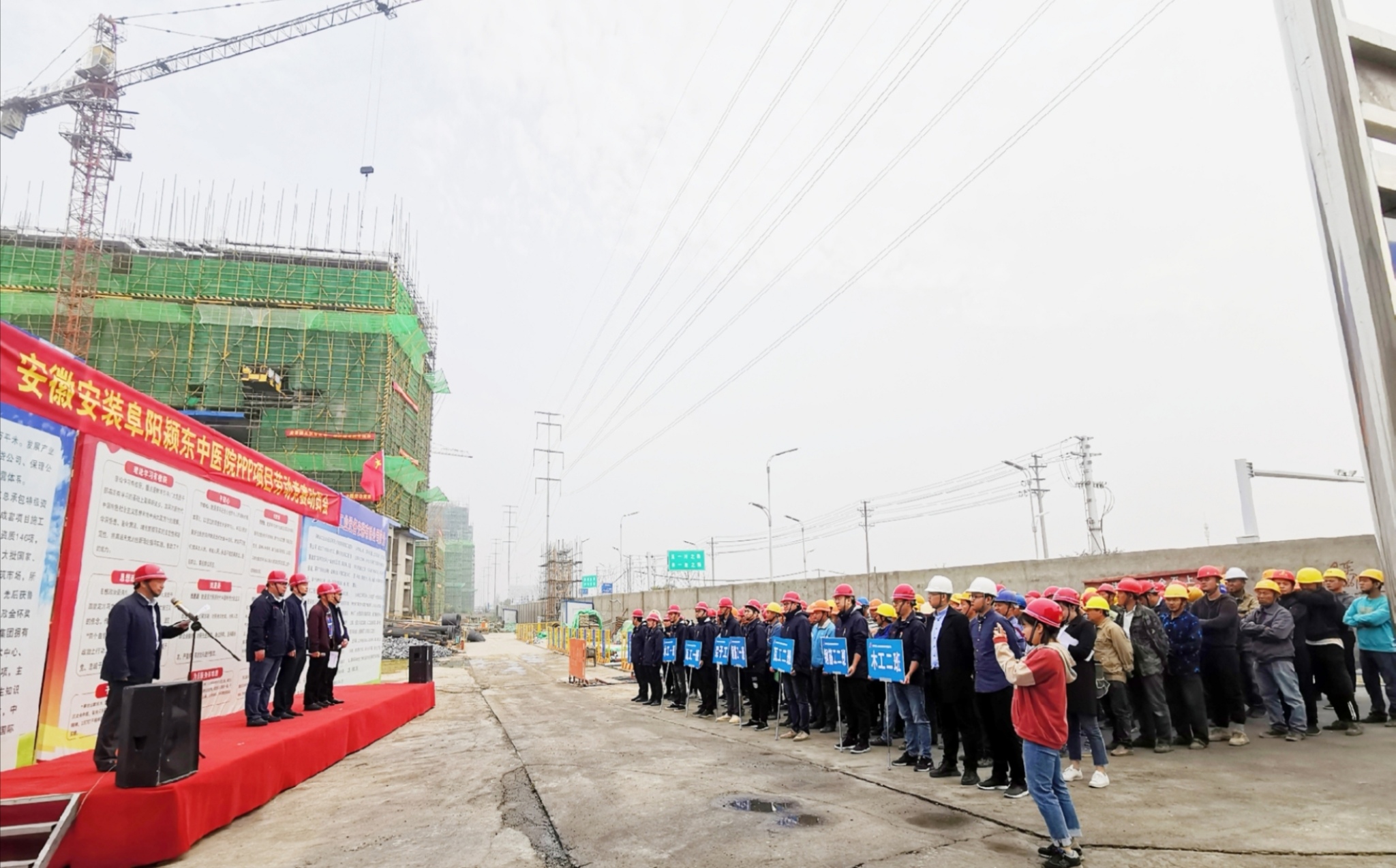 為確保年度各項(xiàng)目目標(biāo)任務(wù)順利完成,貫徹落實(shí)集團(tuán)公司開展“搶進(jìn)度、保工期、穩(wěn)預(yù)期、促提升”為主題勞動競賽活動精神,2019年10月11日上午,安徽安裝召開阜陽潁東區(qū)中醫(yī)院PPP項(xiàng)目“大干四季度”勞動競賽動員大會。公司副總經(jīng)理高飛,紀(jì)委書記、工會主席李寬旭,總工程師吳繼成,公司相關(guān)部門負(fù)責(zé)人、項(xiàng)目管理人員和施工班組共120多人參加了競賽動員會。