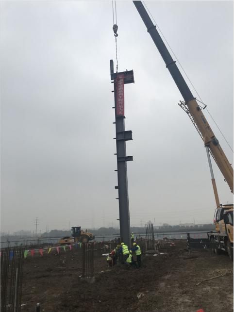 2020年1月2日上午,合肥分公司蕪湖宇培年產(chǎn)50萬方建筑工業(yè)化構(gòu)件生產(chǎn)基地項(xiàng)目鋼結(jié)構(gòu)工程在蕪湖市三山區(qū)項(xiàng)目工地現(xiàn)場舉行了簡約的開工儀式。上午11時(shí)18分,隨著工程首根鋼結(jié)構(gòu)立柱順利吊裝就位成功,標(biāo)志著蕪湖宇培鋼結(jié)構(gòu)安裝工程正式進(jìn)入施工階段。