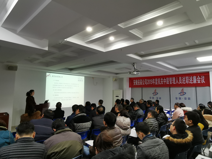 1月7日上午,安徽安裝公司召開2019年度機關中層管理人員述職述廉會議。公司領導班子成員、機關中層管理人員、分公司黨政負責人、機關部門員工代表共60余人參加了此次會議。會議由公司黨委書記、董事長胡六中主持。