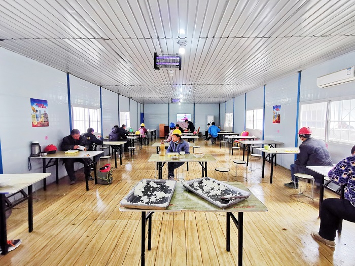 看得見的防疫配備,還有落在實(shí)處的防疫舉措。項(xiàng)目部開展員工返崗前14天健康在線管理,每位員工每日體溫、身體狀況、居住地、活動軌跡等信息,每天線上打卡、全員覆蓋。實(shí)行“生產(chǎn)網(wǎng)格化、吃住軍事化”,員工入“格”后,現(xiàn)場、宿舍、食堂“三點(diǎn)一線”管理,餐廳座位隔單排、菜飯統(tǒng)一打、就餐時間拉長,衛(wèi)生區(qū)域增加管理人員,人員分類管理,將返崗復(fù)工人員控制在最小單元,確保安全。同時,生產(chǎn)流程重組,按項(xiàng)目緩急逐步恢復(fù)生產(chǎn)。