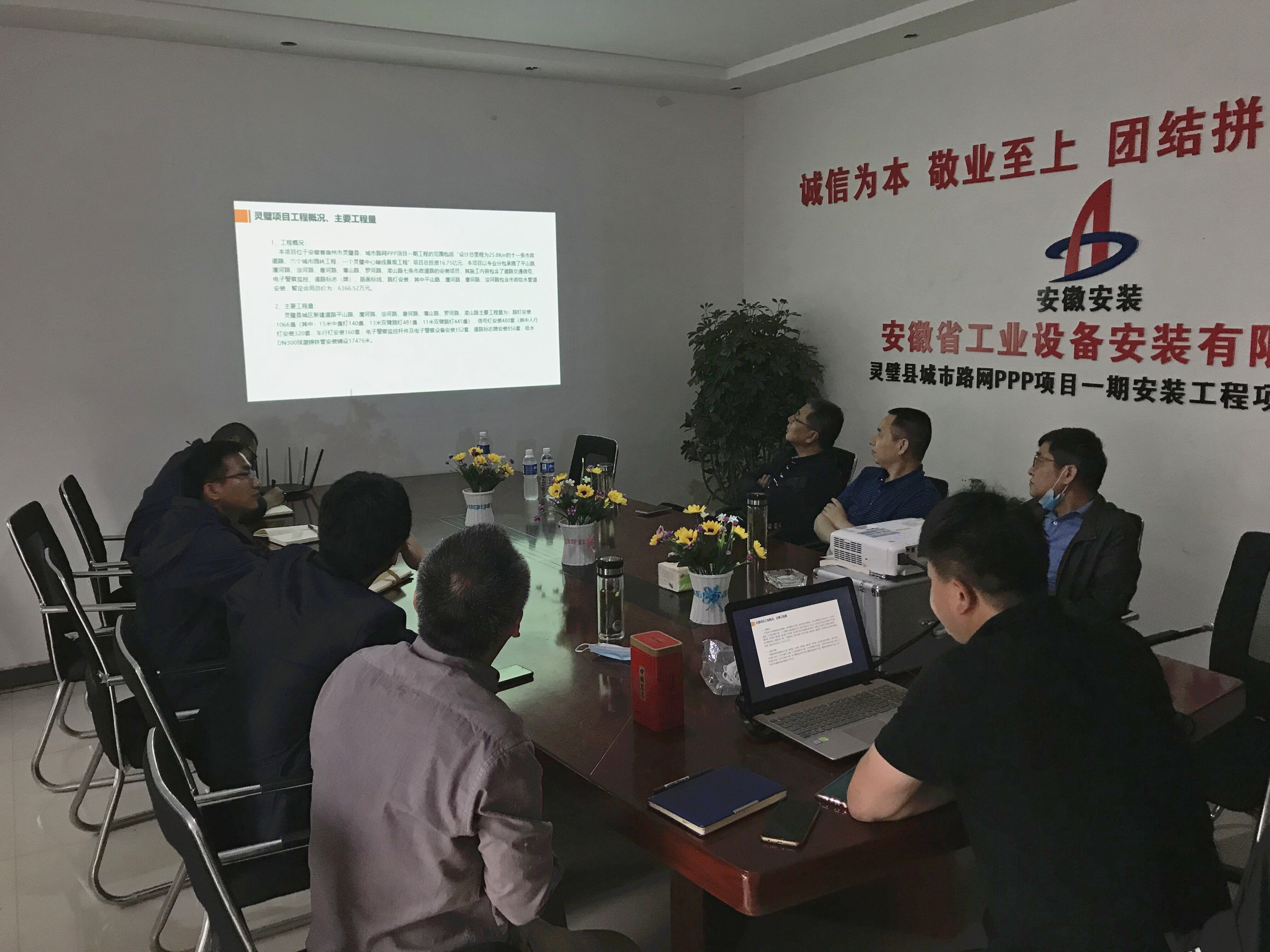 5月8日上午,安徽安裝公司黨委書記、董事長(zhǎng)胡六中,深入靈璧縣城市路網(wǎng)安裝項(xiàng)目調(diào)研指導(dǎo)工作。公司副總經(jīng)理劉安俊,總會(huì)計(jì)師張?jiān)螅偨?jīng)理助理、合肥分公司經(jīng)理趙永峰參加調(diào)研會(huì)。