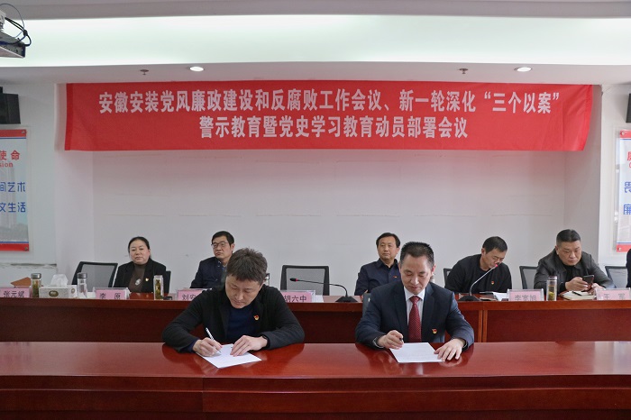 期間,公司黨委與所屬各黨支部簽訂了《黨風廉政建設(shè)責任書》,公司中層管理人員簽訂了《廉潔自律承諾書》。會議以現(xiàn)場加視頻形式召開。公司領(lǐng)導班子成員、機關(guān)中層管理人員、在肥地區(qū)分公司領(lǐng)導班子成員及機關(guān)全體黨員在主會場參會;所屬分公司領(lǐng)導班子成員在視頻分會場參會。