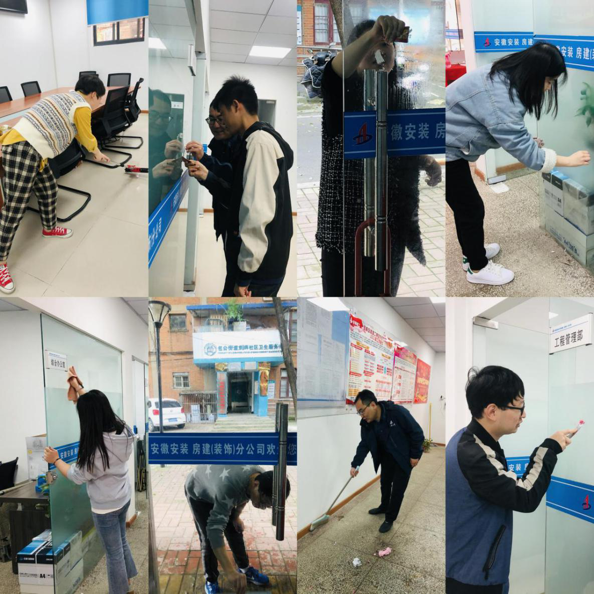 擦洗門窗,打掃會(huì)議室、整理辦公場(chǎng)所,修繕公共設(shè)施等,員工們拿起掃帚、簸箕等各種工具,大家分工明確,迅速行動(dòng),團(tuán)結(jié)協(xié)作,一片熱火朝天的忙碌景象,掀起了衛(wèi)生整治活動(dòng)的高潮。經(jīng)過大家的努力,辦公區(qū)干凈整潔,煥然一新。