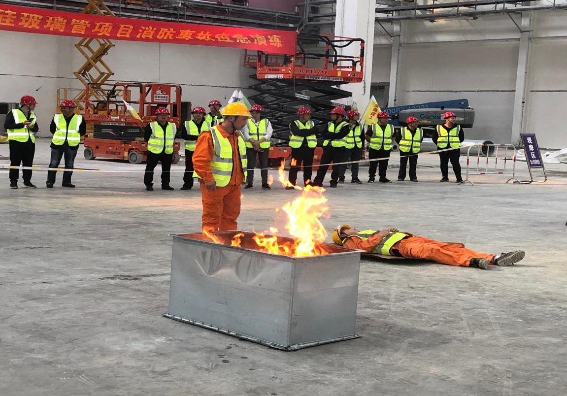為了建立健全生產安全事故綜合應急救援機制,提升應急處置能力,切實落實“安全第一、預防為主、綜合治理”的安全生產工作方針和“預防為主、防消結合”的消防工作方針。2021年4月28日下午,安徽安裝公司在康寧藥用硼硅玻璃管廠房設施建設工程項目開展了安全事故應急救援演練。公司副總經理高飛應邀出席本次此次演練活動,公司相關部門負責同志、所屬各分公司代表、康寧項目部全體員工參加。
