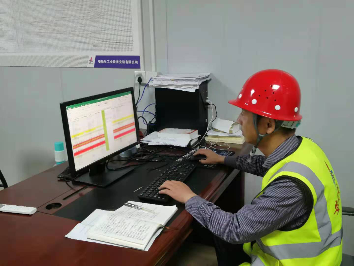 圖為項目副經(jīng)理共產(chǎn)黨員孫浩挑燈夜戰(zhàn)專心致志排查剩余工作量,記錄當天工作日記