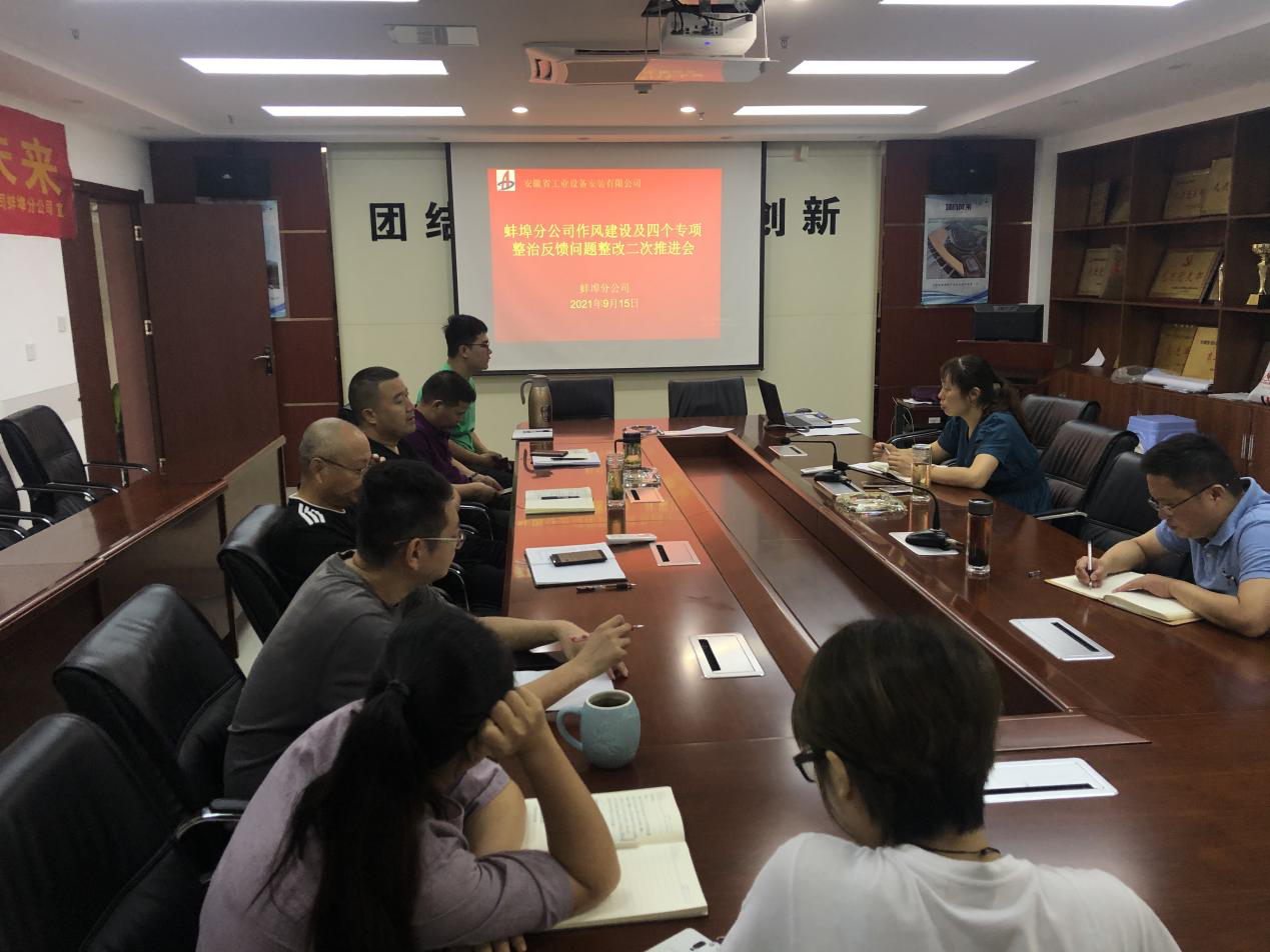 9月15日上午,蚌埠分公司黨支部召開“作風建設及四個專項整治反饋問題整改二次推進會”。分公司支委委員、班子成員、工管部、財務部、經營部、綜合辦等相關部門負責人、具辦人員參加會議,會議由黨支部書記程茂麗主持。