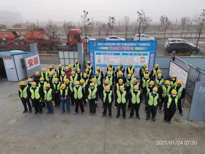 項(xiàng)目部人員進(jìn)場后明確分工,把人員分為三組,一組負(fù)責(zé)編制施工組織設(shè)計(jì),處理設(shè)計(jì)變更,另一組負(fù)責(zé)現(xiàn)場施工,第三組全力做好后勤保障工作。當(dāng)時(shí)的情況可以說是火燒眉毛,一方面康寧方要求確保節(jié)點(diǎn)工期,但現(xiàn)場卻存在邊設(shè)計(jì)邊施工邊修改情況,每天發(fā)出的工程聯(lián)系單就多達(dá)近二十份。安裝工程工序繁復(fù),現(xiàn)場又同時(shí)與土建、鋼結(jié)構(gòu)大面積交叉施工;另一方面項(xiàng)目部管理人員中有許多人都是首次參與外企項(xiàng)目施工,對(duì)外企的技術(shù)和管理要求不適應(yīng)。怎么辦?是臨陣退縮還是迎難而上?面對(duì)這種情況,分公司黨支部以黨史學(xué)習(xí)教育為契機(jī),開展黨員公開承諾踐諾、黨員示范崗活動(dòng),號(hào)召黨員發(fā)揮先鋒模范作用,工會(huì)相繼開展了“大干120天,確保完成施工任務(wù)”,“學(xué)黨史、保安康、 工期、沖千億,大干60天,確保完成目標(biāo)任務(wù)”勞動(dòng)競賽活動(dòng),向全體參戰(zhàn)人員發(fā)出了競賽倡議書,通過勞動(dòng)競賽統(tǒng)一思想,鼓舞士氣,項(xiàng)目部人員吃、住、辦公在工地,加班加點(diǎn),早已成家常便飯。幾乎每一名管理人員都是白天看現(xiàn)場,晚上參加項(xiàng)目現(xiàn)場推進(jìn)會(huì),細(xì)細(xì)梳理每一道工序、每一個(gè)施工節(jié)點(diǎn),制定詳細(xì)實(shí)施計(jì)劃,大家只有一個(gè)信念,一定要確保如期完工,展示安徽安裝良好的形象。
