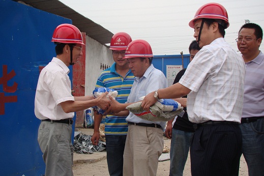 張書記一行首先代表集團公司領(lǐng)導(dǎo)向堅守在項目上的職工表示親切的慰問。隨后又認真聽取了項目部經(jīng)理李紹林就項目工程概況、項目安全生產(chǎn)、安全保護及創(chuàng)文明示范工地等工作匯報。張書記勉勵職工要在高溫季節(jié)努力做好本職工作,項目部要處處做好防暑降溫工作,保證生產(chǎn)安全,保護好職工的身體健康,保質(zhì)保量的完成工作任務(wù),樹立安徽省安的品牌形象,把品牌打出去,逐步開拓市場。最后,戴書記代表省安向集團領(lǐng)導(dǎo)冒著酷暑親臨慰問表示衷心的感謝。他表示:全體省安人將繼續(xù)發(fā)揚特別能吃苦、特別能戰(zhàn)斗的精神,戰(zhàn)勝酷暑,奮力攻堅,保證各項工程任務(wù)順利完成。