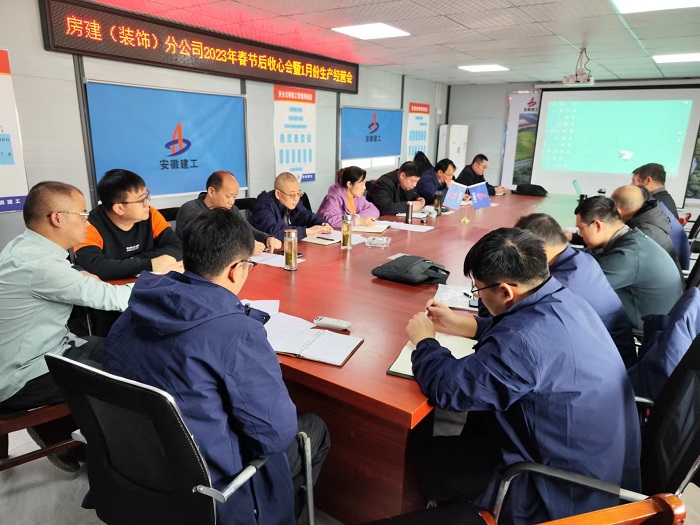 一年春作首,萬事行為先。1月31日,房建(裝飾)分公司在阜南污水處理廠項目部召開1月份生產(chǎn)經(jīng)營會暨春節(jié)后“收心會”,分公司全體員工參會。