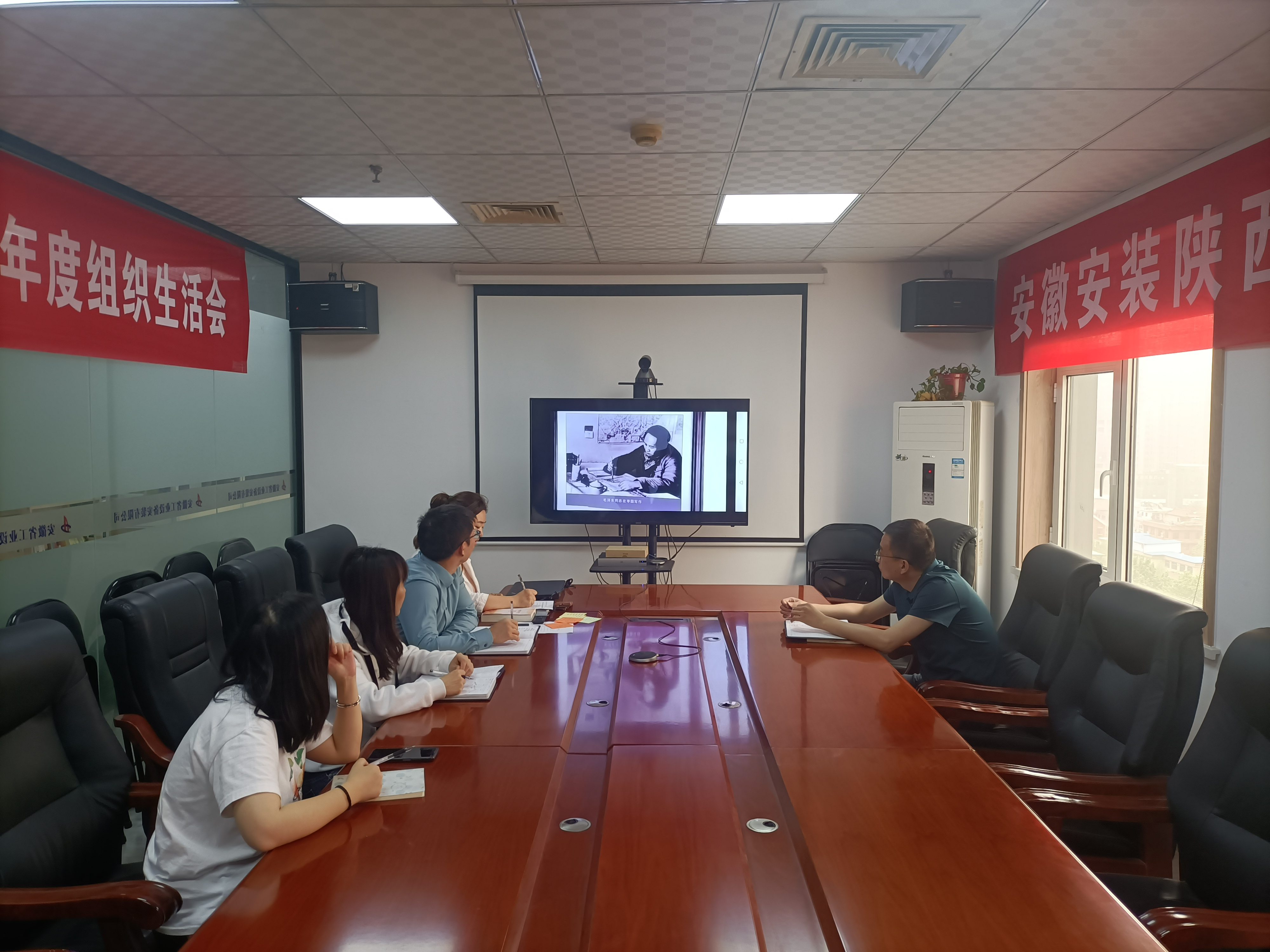 接下來大家還共同觀看了短視頻《毛主席的鎮尺》,學習了毛澤東在棗園時期的歷史故事,接受了紅色革命傳統教育。