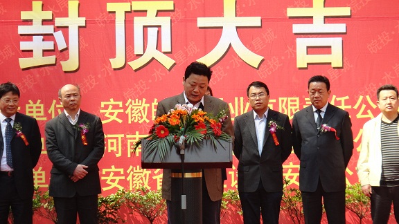 皖投置業總經理耿文女士在慶典上發表講話,對我公司全體人員的工作給予了充分的肯定,并表示皖投水岸星城一期三標段工程的順利封頂,奠定了皖投置業與省安裝公司成為長期戰略合作伙伴的基礎。