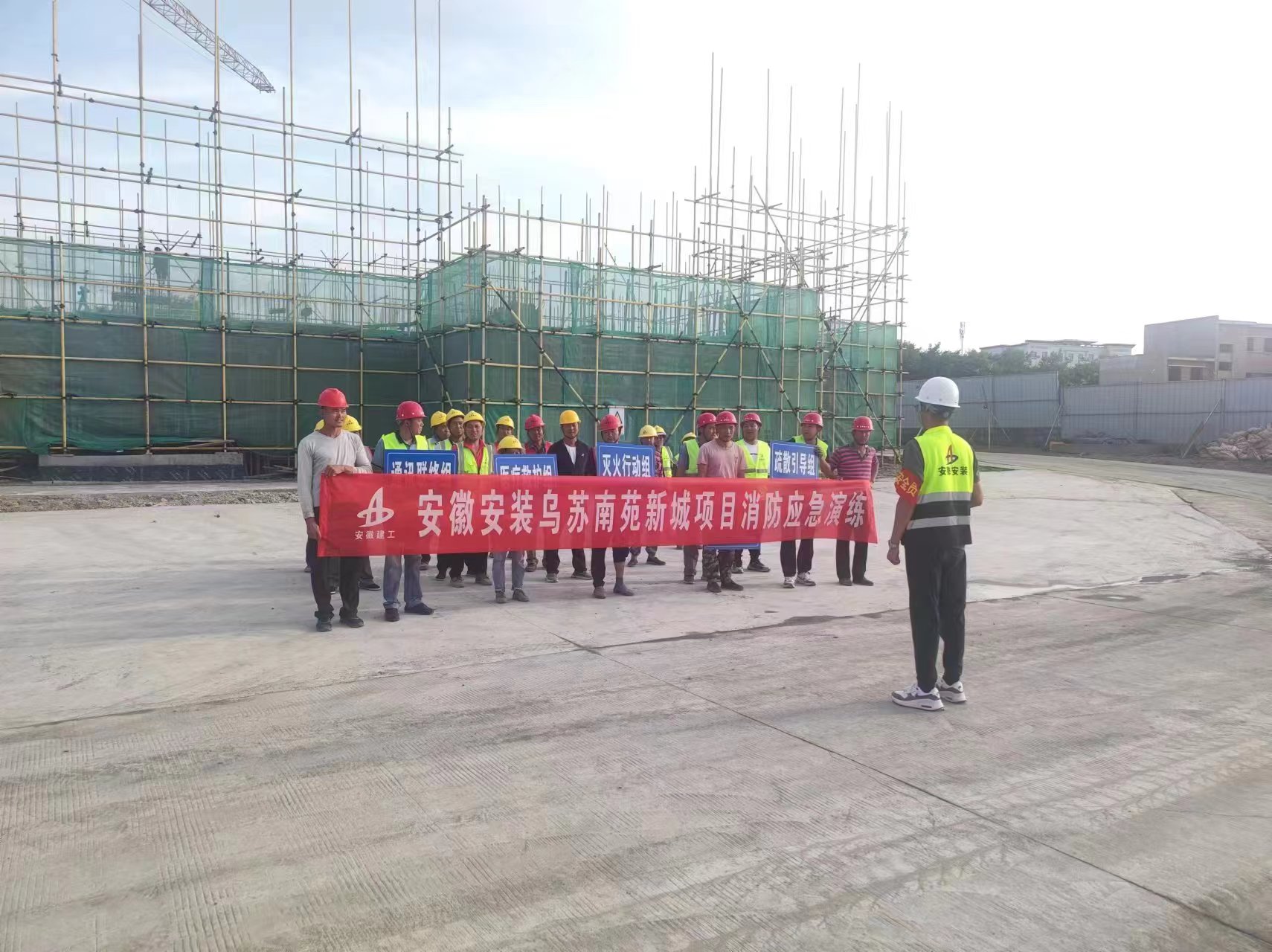 為更好的提高項目現場人員對突發情況的應急處理能力,檢驗應急預案的可行性,6月20日,建工安裝烏蘇市南苑新城小區住宅樓建設工程項目組織開展消防演練。
