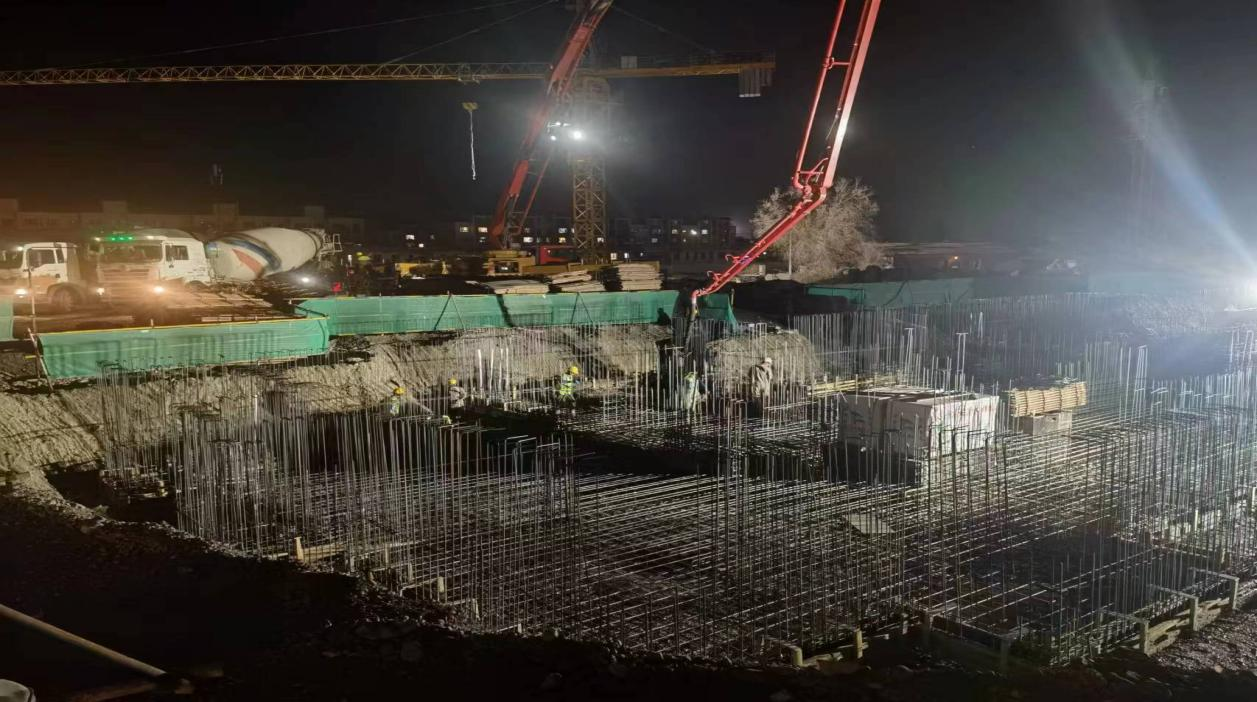為了項(xiàng)目能如期完工,項(xiàng)目部緊抓工程進(jìn)度,采取“白加黑”施工方式,夜幕下的烏蘇南苑項(xiàng)目部施工現(xiàn)場(chǎng)依舊是燈火通明,機(jī)器轟鳴,一片忙碌景象。