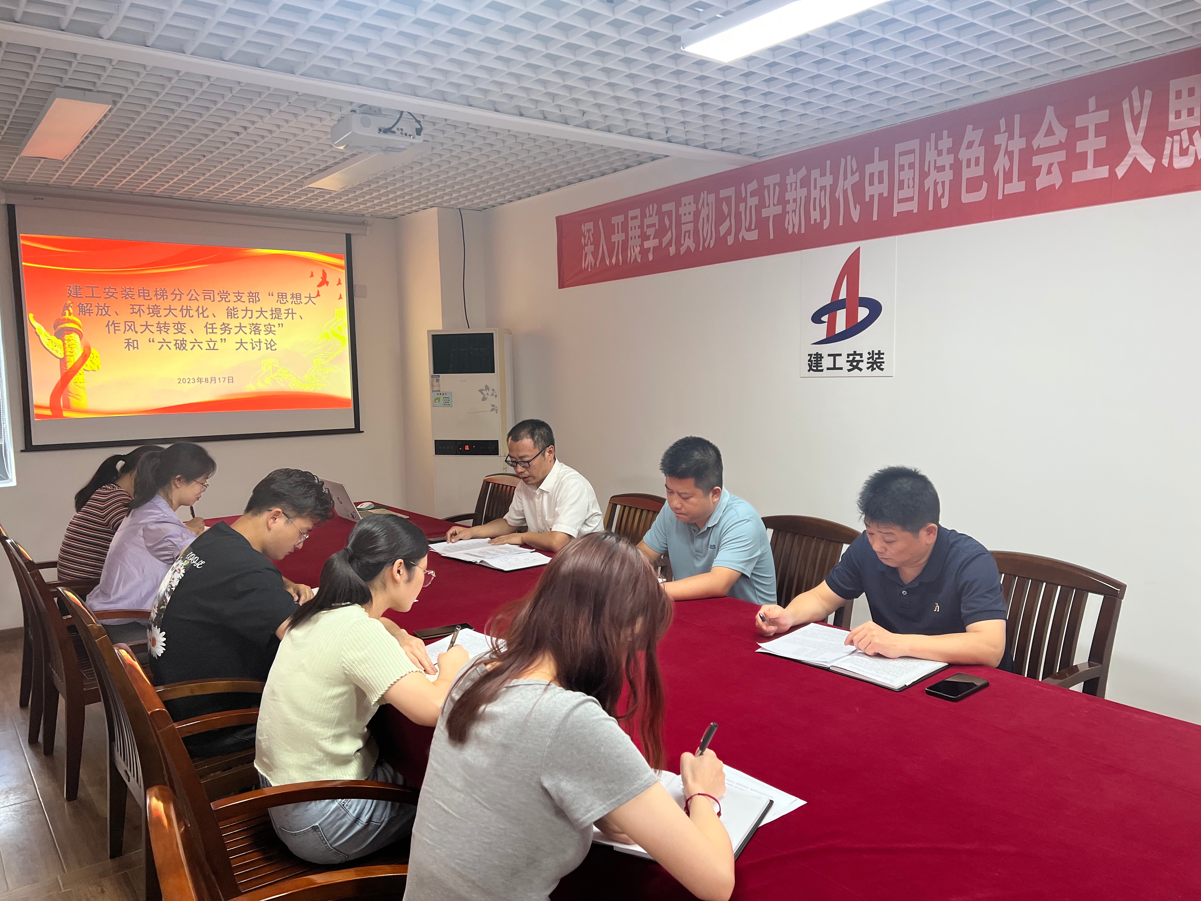 8月17日下午,電梯分公司黨支部圍繞“思想大解放、環境大優化、能力大提升、作風大轉變、任務大落實”和“六破六立”開展集中學習研討,分公司班子成員、全體黨員、部門負責人參加會議。