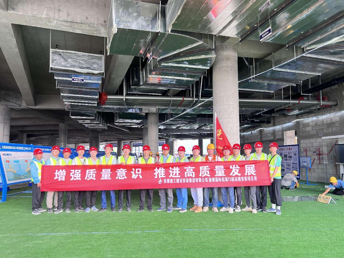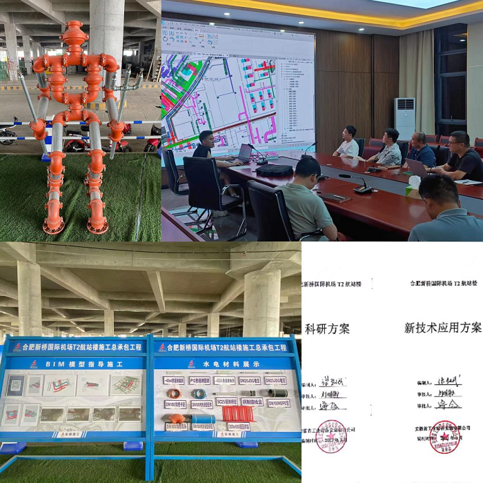 建工安裝新橋國際機(jī)場T2航站樓機(jī)電安裝項(xiàng)目,位于合肥市新橋國際機(jī)場場區(qū)內(nèi),公司承接的施工范圍包括航站樓南北指廊給排水系統(tǒng)、采暖、通風(fēng)空調(diào)系統(tǒng)、消防及電氣系統(tǒng)安裝等,合同總造價2.747億元,合同工期總?cè)諝v天數(shù)941天,計(jì)劃于2025年10月15日竣工。本工程為省一號重點(diǎn)工程,工程體量大,建筑空間大,施工內(nèi)容多、難度大、工期緊,質(zhì)量要求高。自開工建設(shè)以來,項(xiàng)目部結(jié)合實(shí)際,通過設(shè)立“黨員示范崗”和成立黨員技術(shù)攻關(guān)小組,助推項(xiàng)目建設(shè)“加速度”。項(xiàng)目黨員同志帶頭研究新工藝、創(chuàng)新使用新方法,大力開展技術(shù)攻關(guān),通過不斷摸索實(shí)驗(yàn),逐步形成了以BIM+“樣板引路”的智慧施工管理模式,在充分發(fā)揮黨員先鋒模范作用的同時,進(jìn)一步提高生產(chǎn)效率和工程質(zhì)量,促進(jìn)黨建和生產(chǎn)經(jīng)營有效融合。