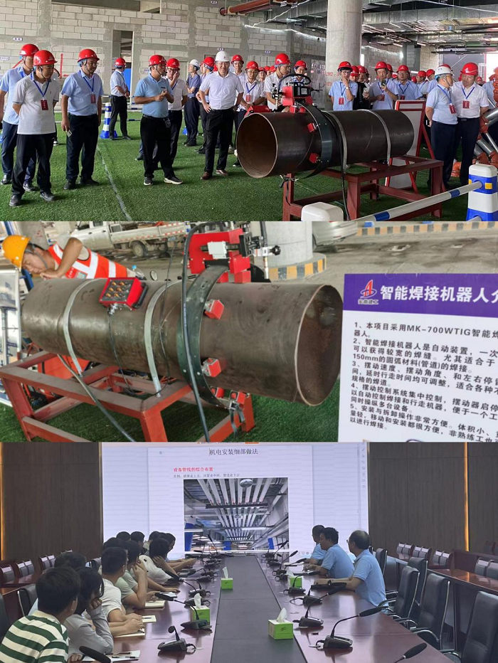 在技術(shù)攻關(guān)小組成員的帶領(lǐng)下,項(xiàng)目部積極響應(yīng)國家“雙碳”目標(biāo)和智能建造要求,創(chuàng)新運(yùn)用智能焊接機(jī)器人代替人工焊接,確保“樣板引路”穩(wěn)定高效實(shí)施。技術(shù)攻關(guān)小組成員經(jīng)過數(shù)次考察試驗(yàn),結(jié)合實(shí)際引入了MK-700WTIG管道焊接小車,它體積小,重量輕,安裝、拆卸和移動方便,兼具標(biāo)準(zhǔn)角焊機(jī)簡易輕便的特點(diǎn),避免了人為因素所造成的焊縫和質(zhì)量不高現(xiàn)象,可以大幅度提高焊接效率,減少材料損耗和施工返工率,進(jìn)一步提高生產(chǎn)效率。技術(shù)攻關(guān)小組先后編制了智能焊接機(jī)器人操作指南和工藝視頻,有效幫助指導(dǎo)現(xiàn)場項(xiàng)目人員更好地掌握運(yùn)用智能焊接機(jī)器人技術(shù)。通過“BIM+智能焊接機(jī)器人”方式,項(xiàng)目部形成了高質(zhì)量、高標(biāo)準(zhǔn)和穩(wěn)定的現(xiàn)場施工模式以及數(shù)字化、智能化的智慧管理模式,大力推動項(xiàng)目智能建造體系的構(gòu)建,助推項(xiàng)目降本增效。
