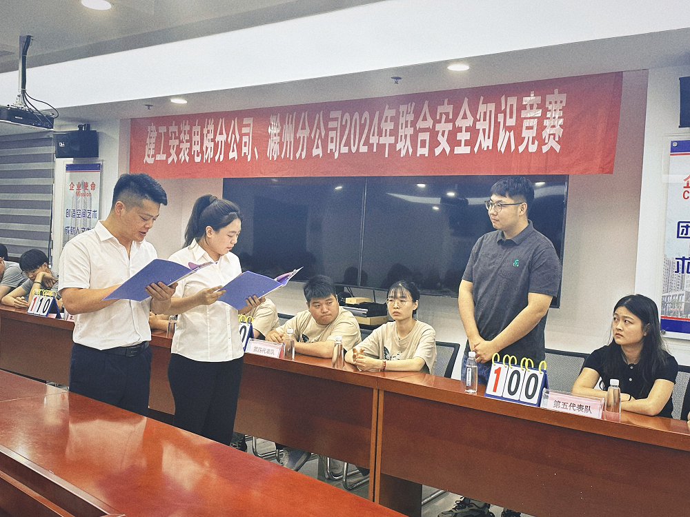 為提升員工安全管理意識,推動安全月活動走深走實,6月14日下午,電梯分公司、滁州分公司聯(lián)合舉辦以“人人講安全、個個會應(yīng)急——暢通生命通道”為主題的安全知識競賽。公司工程管理部安全辦公室負(fù)責(zé)同志擔(dān)任比賽評委,電梯分公司、滁州分公司領(lǐng)導(dǎo)班子、在肥員工參加活動。