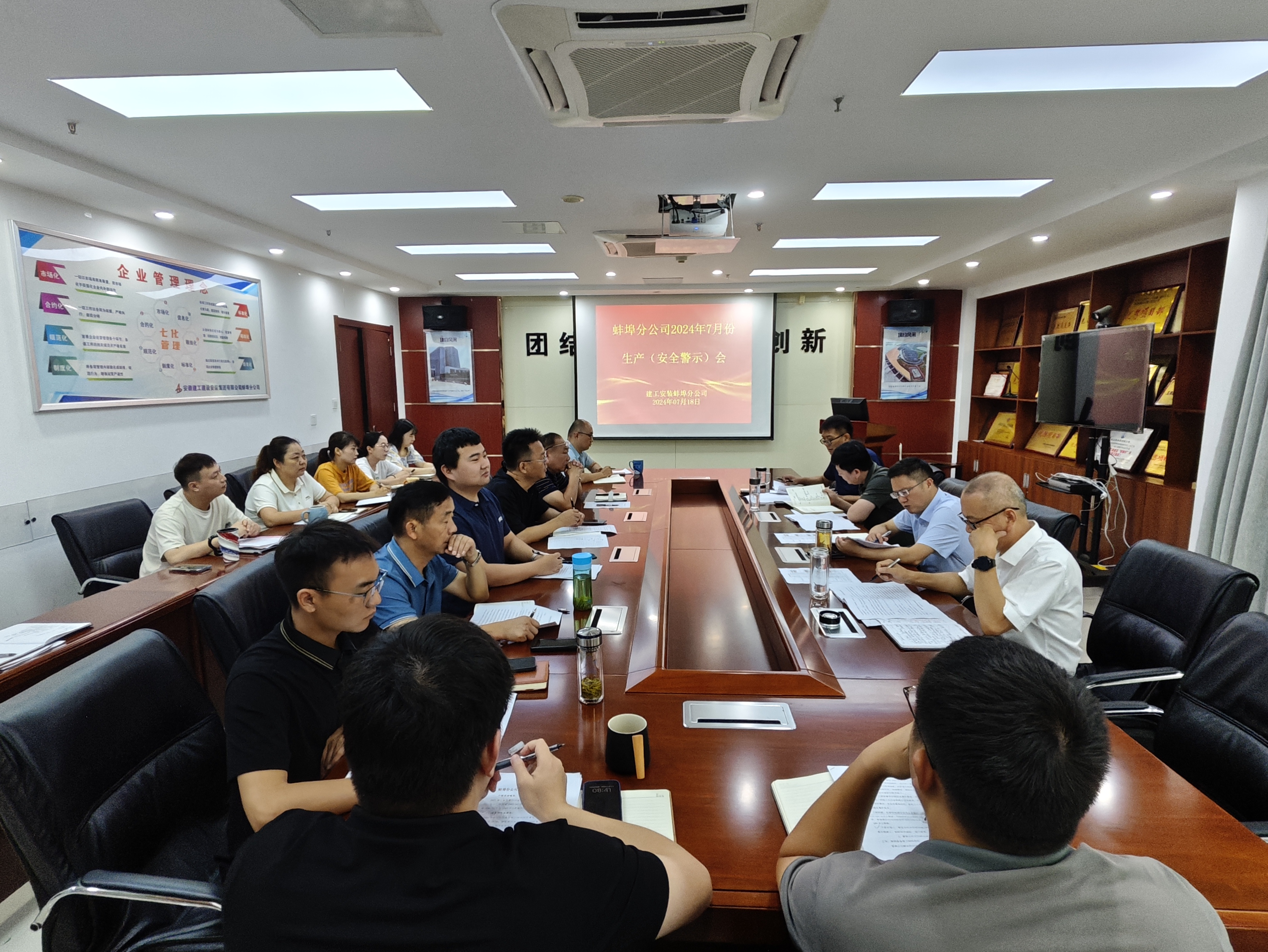 7月18日上午,蚌埠分公司組織召開7月份生產(chǎn)(安全警示)會(huì),分公司領(lǐng)導(dǎo)班子、所屬各項(xiàng)目經(jīng)理、機(jī)關(guān)各部門負(fù)責(zé)人及工程管理部全體員工參加會(huì)議,會(huì)議由副經(jīng)理張斌主持。