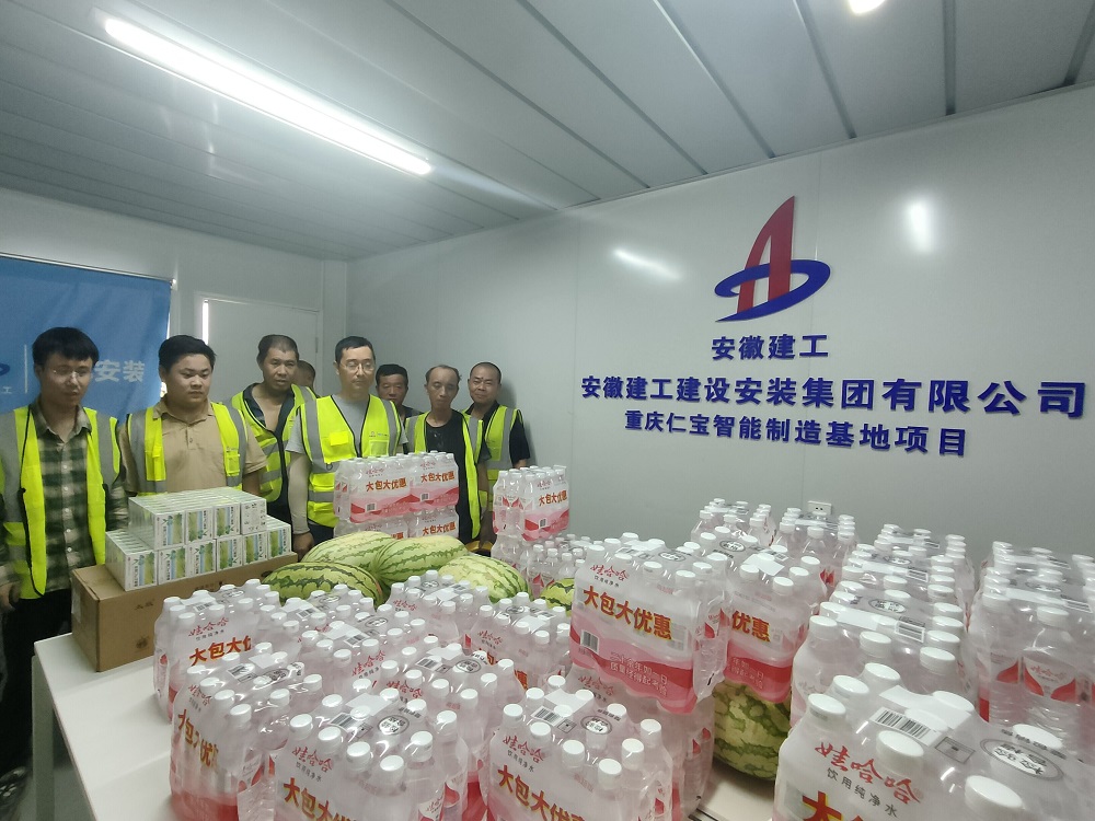 盛夏已至,驕陽似火,建工安裝合肥分公司省內外各項目現場掀起“沖刺三季度”大干熱潮。在合理組織施工的同時,分公司多措并舉,通過聯合屬地項目部開展送清涼等慰問活動,為建設者安全健康提供保障。