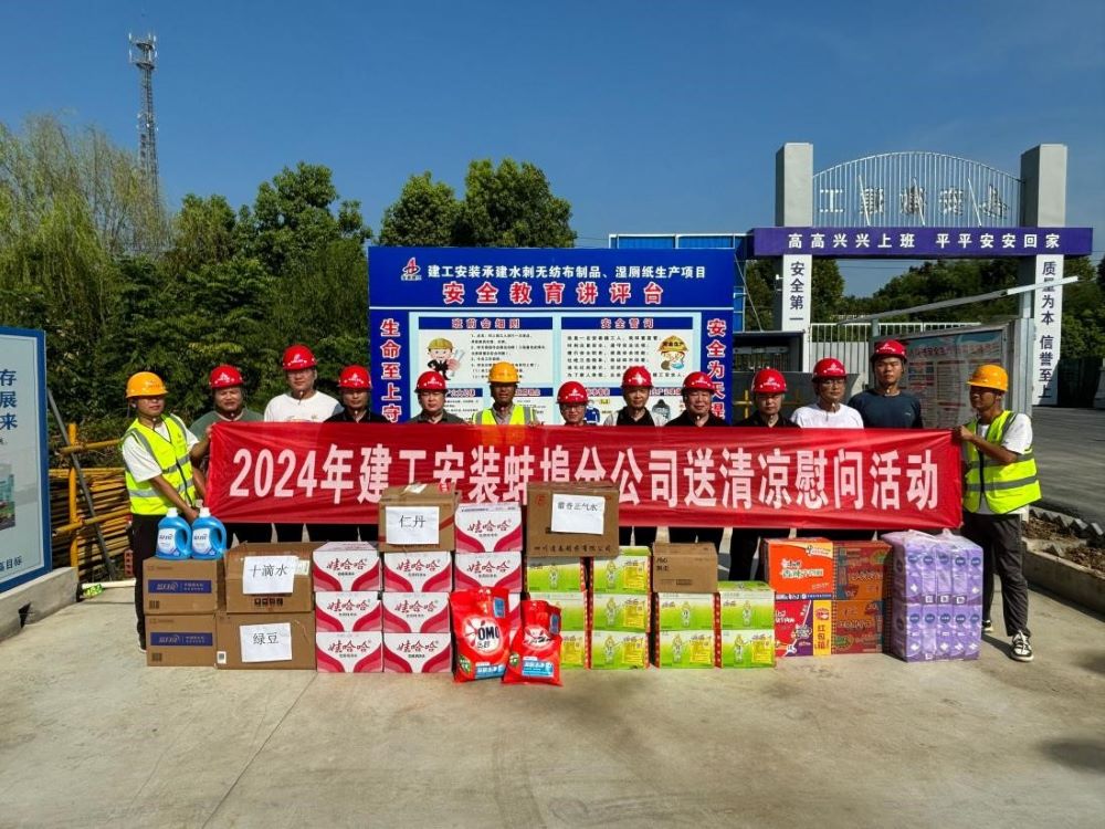 分公司領導班子先后到六鋼大廈(酒店)工程施工總承包項目、蚌埠高新區電子信息產業園EPC項目室外廊架管網工程項目、年產2000噸氯蟲苯甲酰胺原藥及中間體項目、安徽深巖醫藥化工科技有限公司醫藥中間體及新材料項目廠區單體工程項目、水刺無紡布制品.濕廁紙生產項目現場,為一線施工人員準備了礦泉水、冰紅茶、綠豆、西瓜等防暑降溫物品,對他們的辛勤付出表示感謝,并反復叮囑大家要注意防暑降溫,合理安排施工和休息時間,確保施工安全。