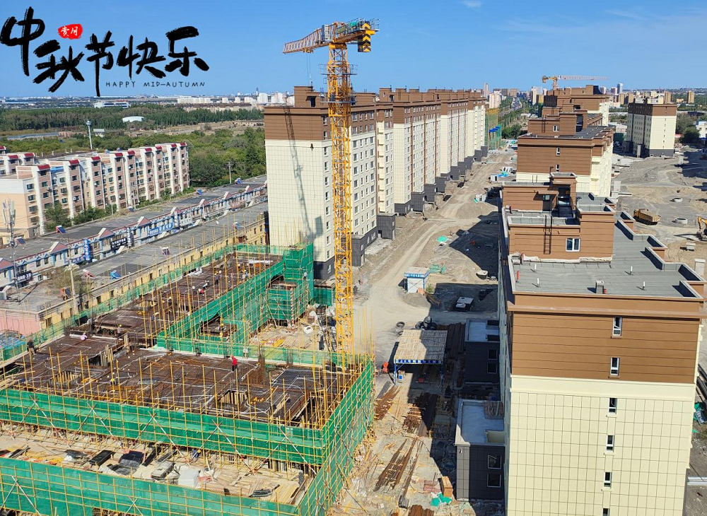中秋佳節(jié)如期至,良辰施工奮斗時。在新疆烏蘇,南苑新城小區(qū)住宅樓建設(shè)項目施工現(xiàn)場樓宇林立、錯落有致,項目室外管網(wǎng)及室外配電設(shè)施全面進行施工,新開樓棟已完成4棟樓主體結(jié)構(gòu)封頂,現(xiàn)為在冬休期來臨之前實現(xiàn) 22 棟樓竣工驗收,完善室外供電、供暖、給排水、消防等基礎(chǔ)設(shè)施,以及完成新開樓棟主體結(jié)構(gòu)驗收的目標而不懈奮斗。項目全體員工以跑步前進、只爭朝夕的昂揚姿態(tài),全力保障項目施工建設(shè)高效推進。