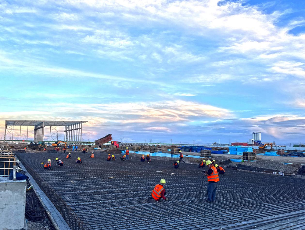 走進(jìn)青海鹽湖項(xiàng)目施工現(xiàn)場(chǎng),建設(shè)者們堅(jiān)守施工一線,正有條不紊地忙碌著,進(jìn)行鋼筋綁扎、模板安裝、混凝土澆筑、鋼結(jié)構(gòu)安裝……連日來(lái),項(xiàng)目開(kāi)啟“白加黑”工作模式,白天機(jī)械轟鳴,晚上挑燈夜戰(zhàn),全體參建人員鉚足干勁、齊心協(xié)力,為工程項(xiàng)目快速推進(jìn)保駕護(hù)航。
