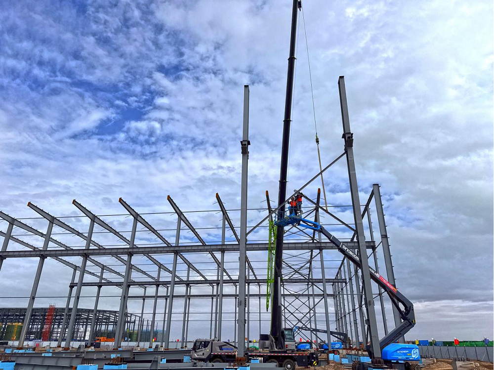 截至目前,廠房鋼結(jié)構(gòu)完成1500噸建設(shè)量,獨(dú)立基礎(chǔ)、條形基礎(chǔ)全部完成,設(shè)備基礎(chǔ)正在施工;變電所二層主體施工完成,三層主體正在施工。