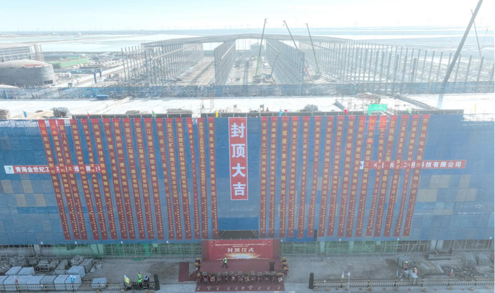 10月18日上午,建工安裝新疆烏蘇分公司青海鹽湖納濾反滲透精制廠房建筑工程項目舉行變電所主體結構封頂儀式,伴隨著最后一方混凝土澆筑到位,變電所主體被“封頂大吉”的大紅條幅和紅色祝福標語裝點得格外喜慶!建設單位、監理單位、總包單位的相關領導出席儀式并致辭,鹽湖 4萬噸/年基礎鋰鹽一體化項目全體參建單位以及項目部全體成員、現場工人代表參加了儀式。