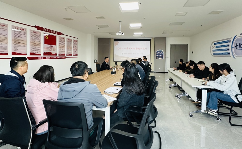 10月23日下午,公司黨委委員、副總經理劉曉剛赴聯系點滁州分公司宣講黨的二十屆三中全會精神并開展工作調研。分公司領導班子成員、部分在滁項目經理、機關全體員工聆聽宣講。