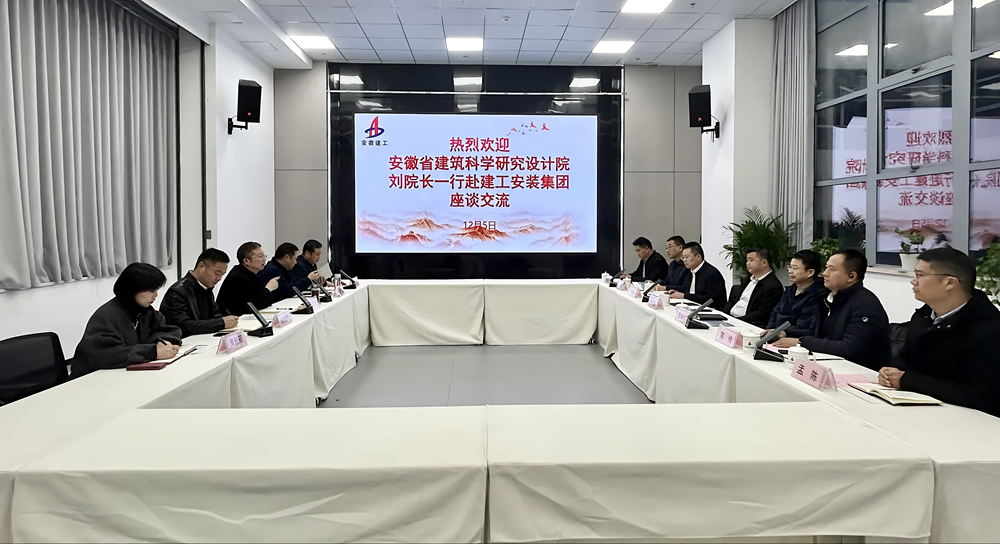 12月5日下午,安徽省建筑科學研究設計院黨委副書記、院長劉春雷一行到訪建工安裝集團。建工安裝黨委書記、董事長朱珍宏熱情接待并主持座談交流。