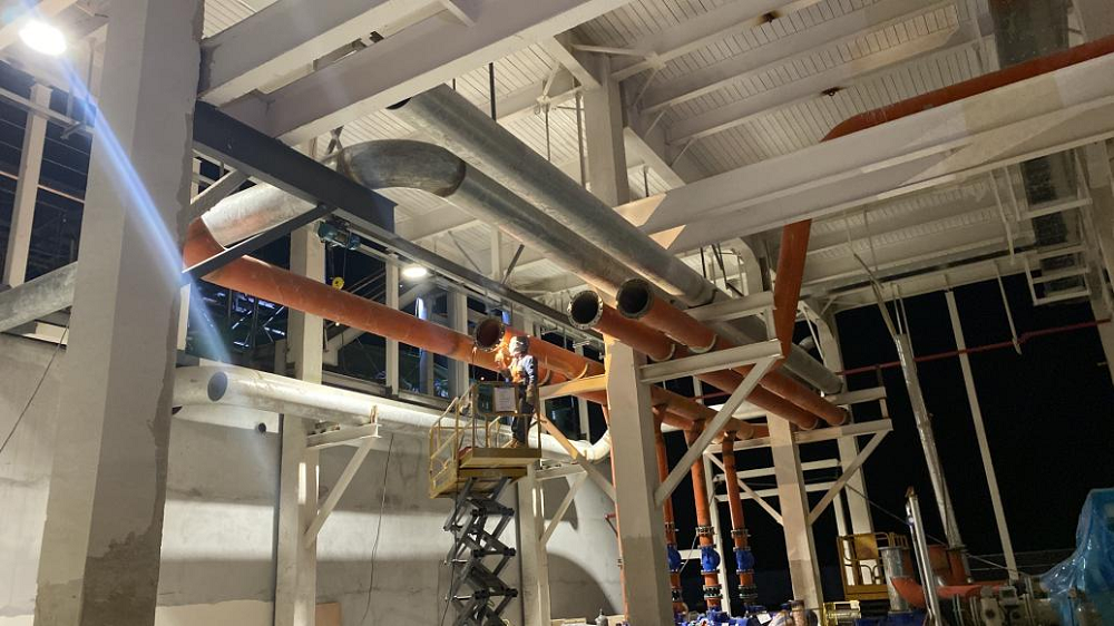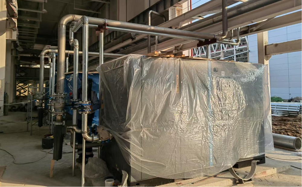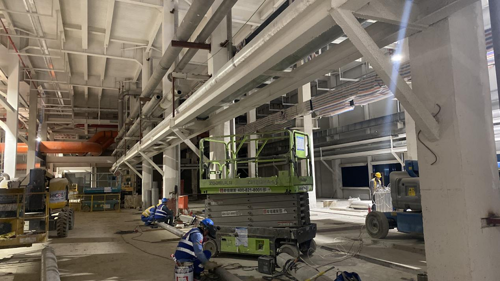 站房一(能源中心)作為整個廠區的“發動機”,建筑面積雖僅有11000平方米,但單體機電安裝造價約8000萬元,施工內容涵蓋空壓站、污水處理站、高效制冷機房、消防泵房及給水加壓站房等全廠幾乎所有核心“部件”。面對施工工藝復雜、工期緊、標準高且施工過程中設計變更頻繁、設備供貨周期長、資金不到位等多種不利因素,項目部積極想辦法克服困難,采取主動對接各方資源,深化設計確認、督促設備批量排產、加快技術交底完成、倒排施工計劃等一系列有效措施,堅持“搶進度、抓質量、保安全”核心思想不動搖,加班加點推進項目建設。截至目前,站房一(能源中心)形象進度已完成55%以上,實現產能過半,為確保關鍵合同節點“2025年2月28日公用動力系統調試完成,并具備各生產條件”打下堅實基礎。