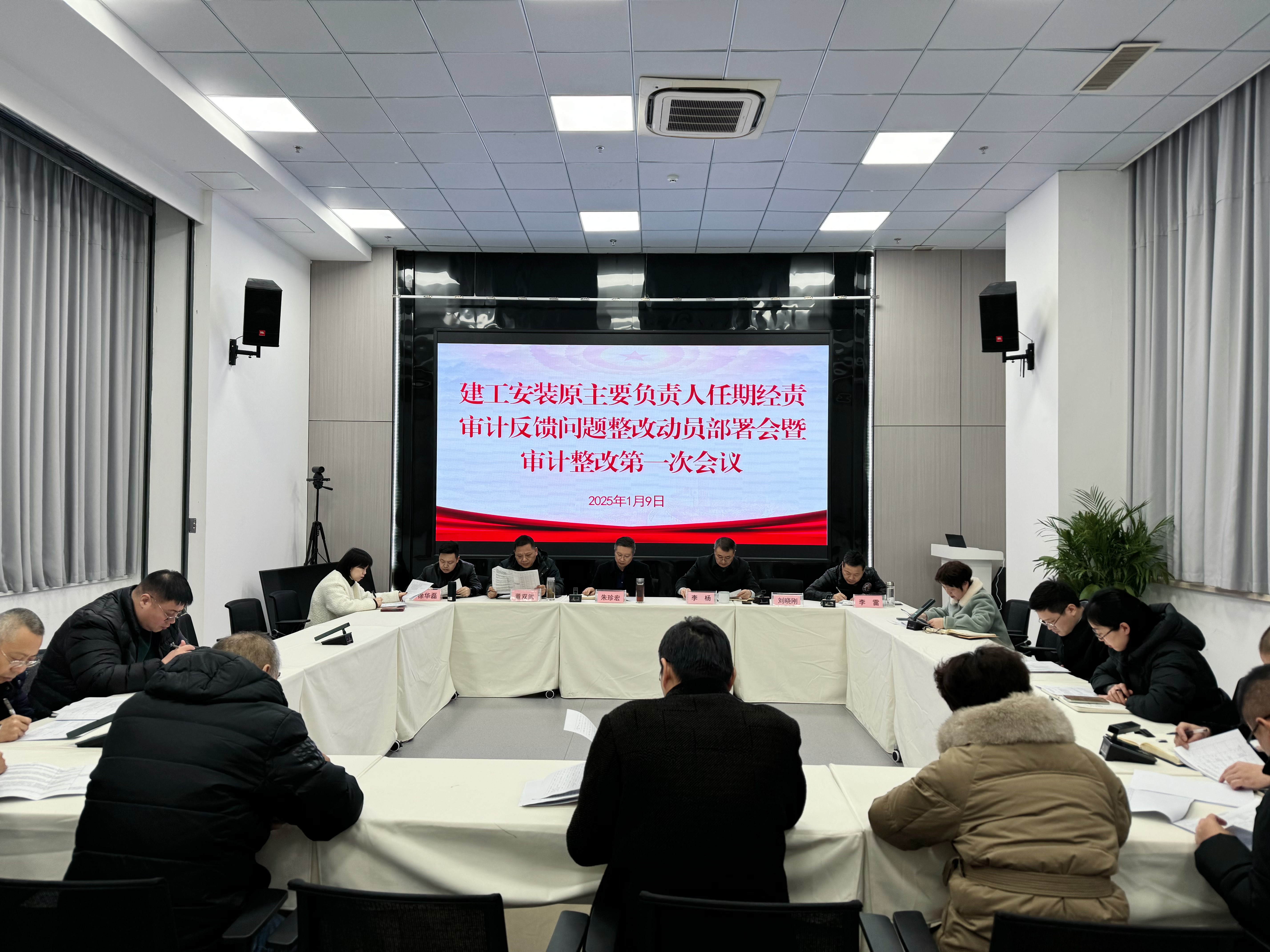 1月9日,建工安裝召開公司原主要負責人任期經責審計反饋問題整改動員部署會暨審計整改第一次會議。公司黨委書記、董事長朱珍宏主持會議并作講話。