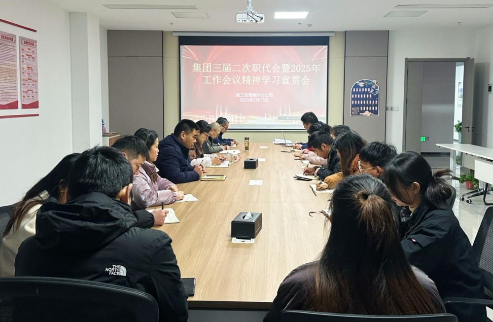 2月13日上午,建工安裝滁州分公司分別在機關和項目部組織召開專題會議傳達學習建工控股三屆二次職代會暨2025年工作會議精神,分公司領導班子成員、機關全體員工和新橋智能制造產業園項目員工參加會議。