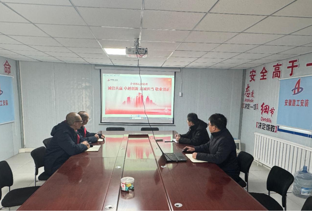 近日,建工安裝新疆烏蘇分公司召開專題學習會,傳達學習宣貫集團核心價值觀,會議以現場+視頻方式召開,分公司黨支部書記、經理李磊主持會議,分公司領導班子成員、機關及項目人員參加。