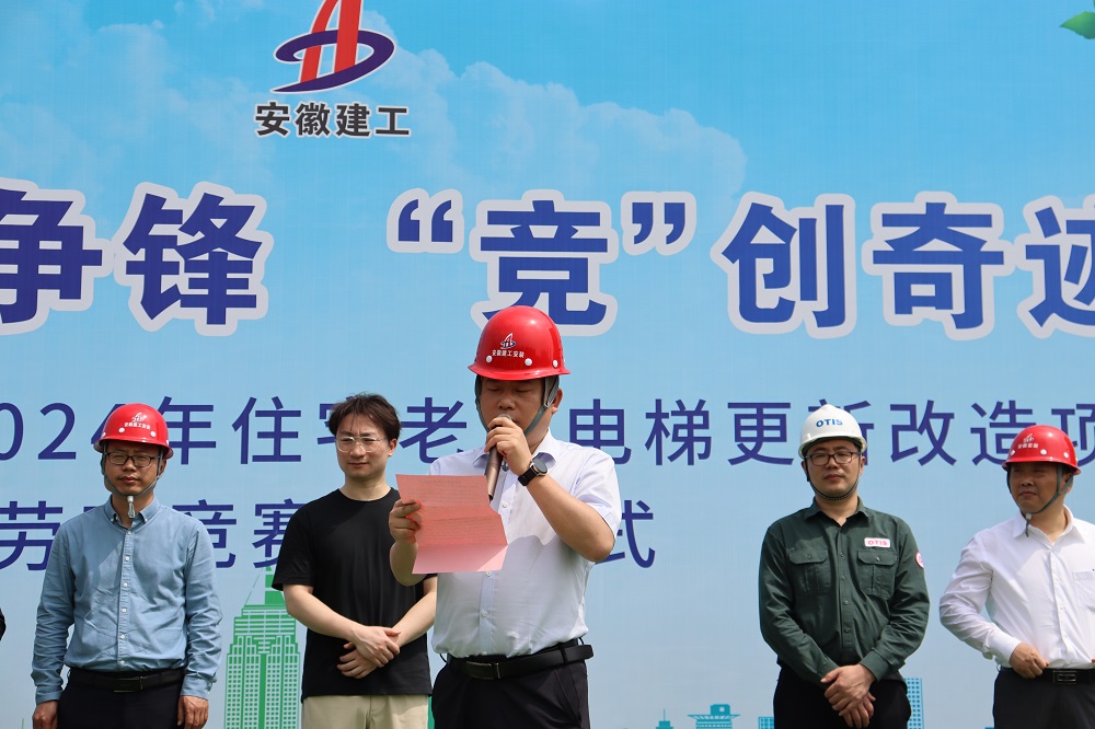 為貫徹集團(tuán)和公司兩級(jí)職代會(huì)精神,落實(shí)公司勞動(dòng)競(jìng)賽活動(dòng)相關(guān)工作要求,加快工程建設(shè)進(jìn)度,不斷提高項(xiàng)目管理和建設(shè)水平,4月10日,建工安裝電梯分公司蚌埠2024年住宅老舊電梯更新改造項(xiàng)目舉行了以“梯”速爭(zhēng)鋒 “競(jìng)”創(chuàng)奇跡為主題的勞動(dòng)競(jìng)賽啟動(dòng)儀式,正式吹響了“大干20天,決戰(zhàn)4.30”勞動(dòng)競(jìng)賽的奮進(jìn)號(hào)角。蚌埠市城市投資控股有限公司代表、分公司班子成員、項(xiàng)目部管理人員、各參建單位代表及作業(yè)人員共130余人參加活動(dòng)。