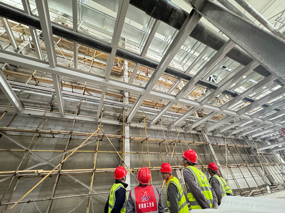 青海高原,氣候惡劣,環(huán)境艱苦,高寒缺氧,但這些困難并沒有阻擋項目部全體成員奮斗的步伐。施工現(xiàn)場,機器轟鳴聲此起彼伏,工人們頭戴安全帽,身系安全繩,操作著各種設備,熟練地進行著防水卷材敷設、吊頂板安裝、鋼筋綁扎、外墻抹灰、風管安裝等作業(yè),每個環(huán)節(jié)都緊張有序,環(huán)環(huán)相扣。項目管理人員穿梭在各個施工點,緊盯現(xiàn)場安全與質(zhì)量,及時協(xié)調(diào)解決施工中遇到的問題,他們?nèi)硇牡赝度氲焦ぷ髦校脤I(yè)的素養(yǎng)和嚴謹?shù)膽B(tài)度為項目建設保駕護航。