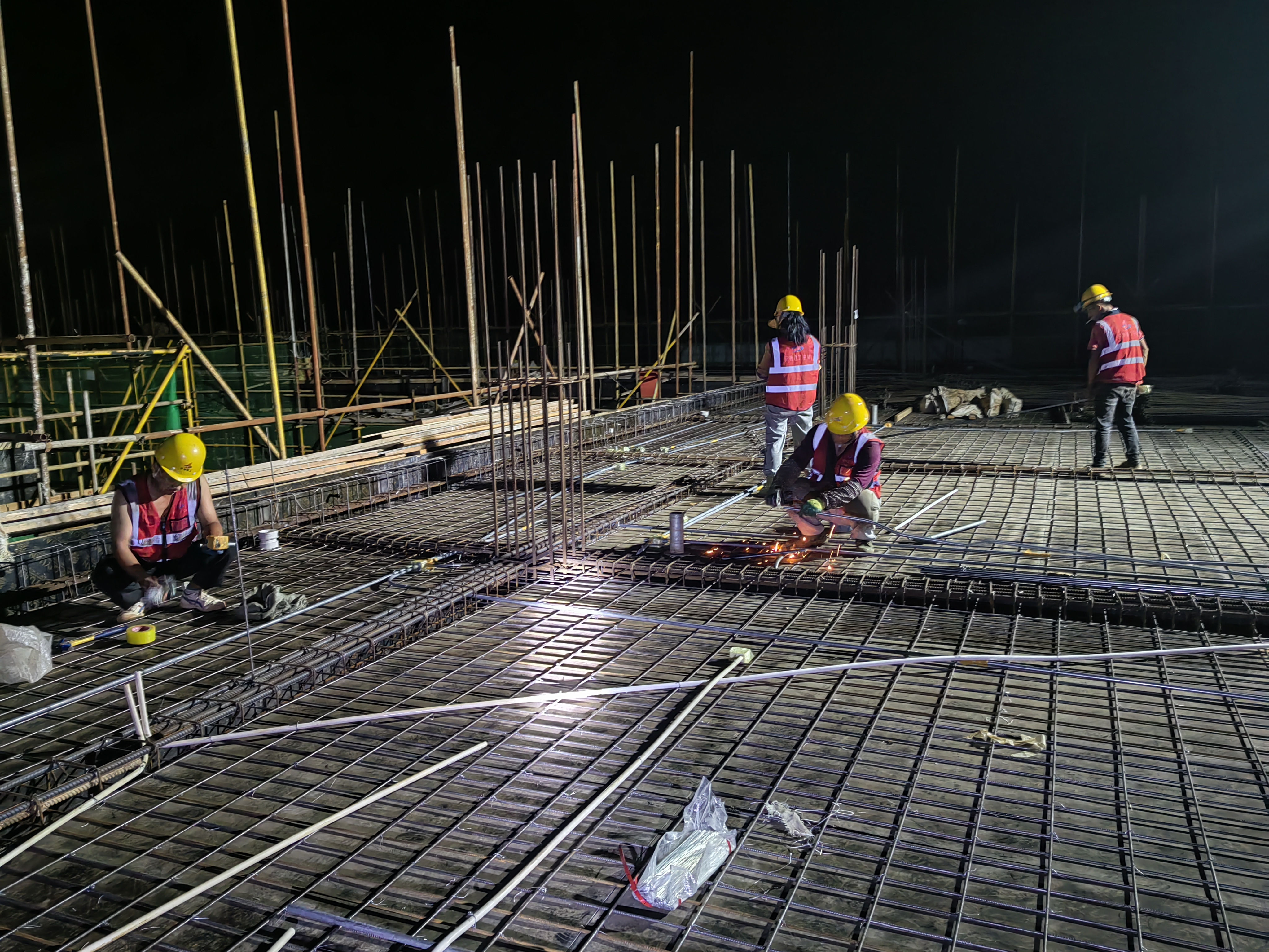 工人加班加點進行水電線管布置
